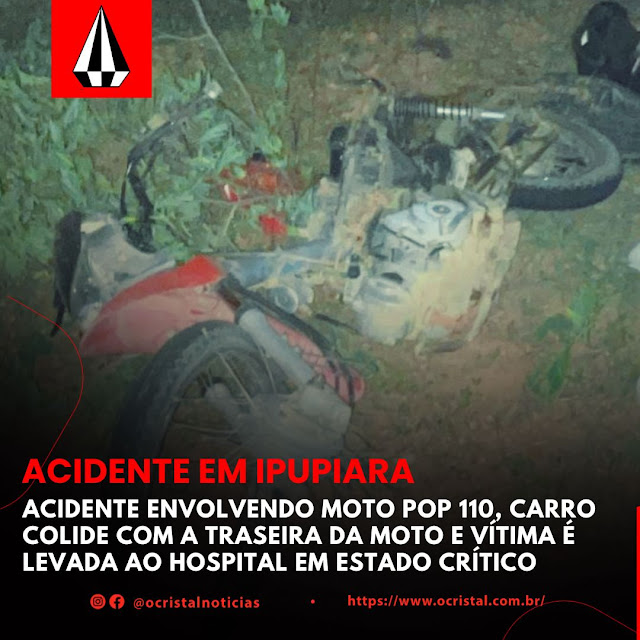 ACIDENTE EM IPUPIARA: Acidente envolvendo Moto Pop 110 e Carro Colide com a Traseira da Moto e Vítima é Levada ao Hospital em Estado Crítico