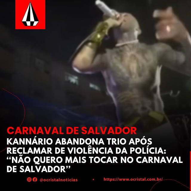 KANNÁRIO ABANDONA TRIO APÓS RECLAMAR DE VIOLÊNCIA DA POLÍCIA: ‘‘NÃO QUERO MAIS TOCAR NO CARNAVAL DE SALVADOR’’